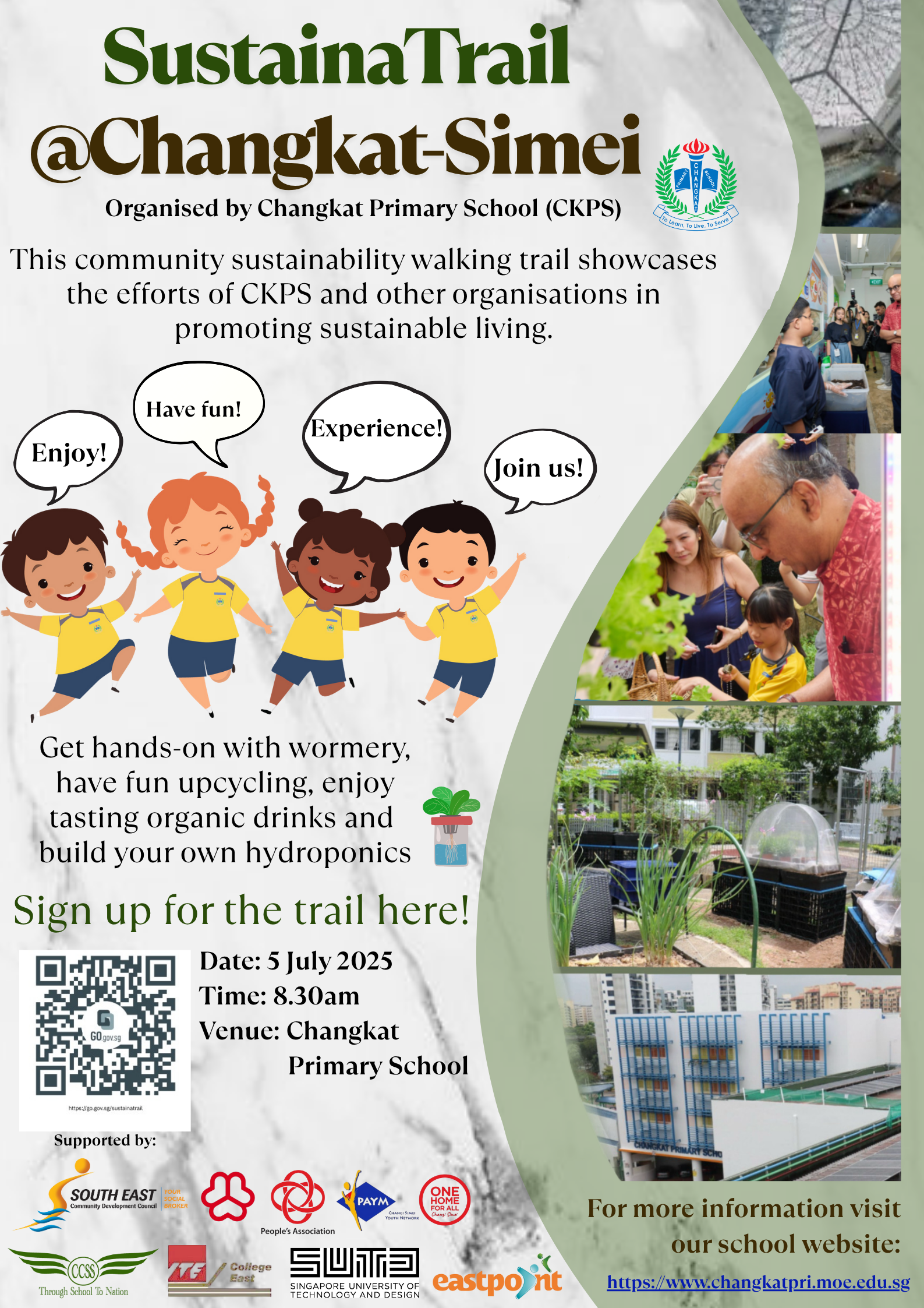 Changkat Primary School was served as the official launch site of the trail on 5 July 2025. Through showcasing both the school’s and the community’s sustainability initiatives, the trail aims to raise awareness and inspire individuals and groups to take meaningful action in building a greener Simei and Singapore.